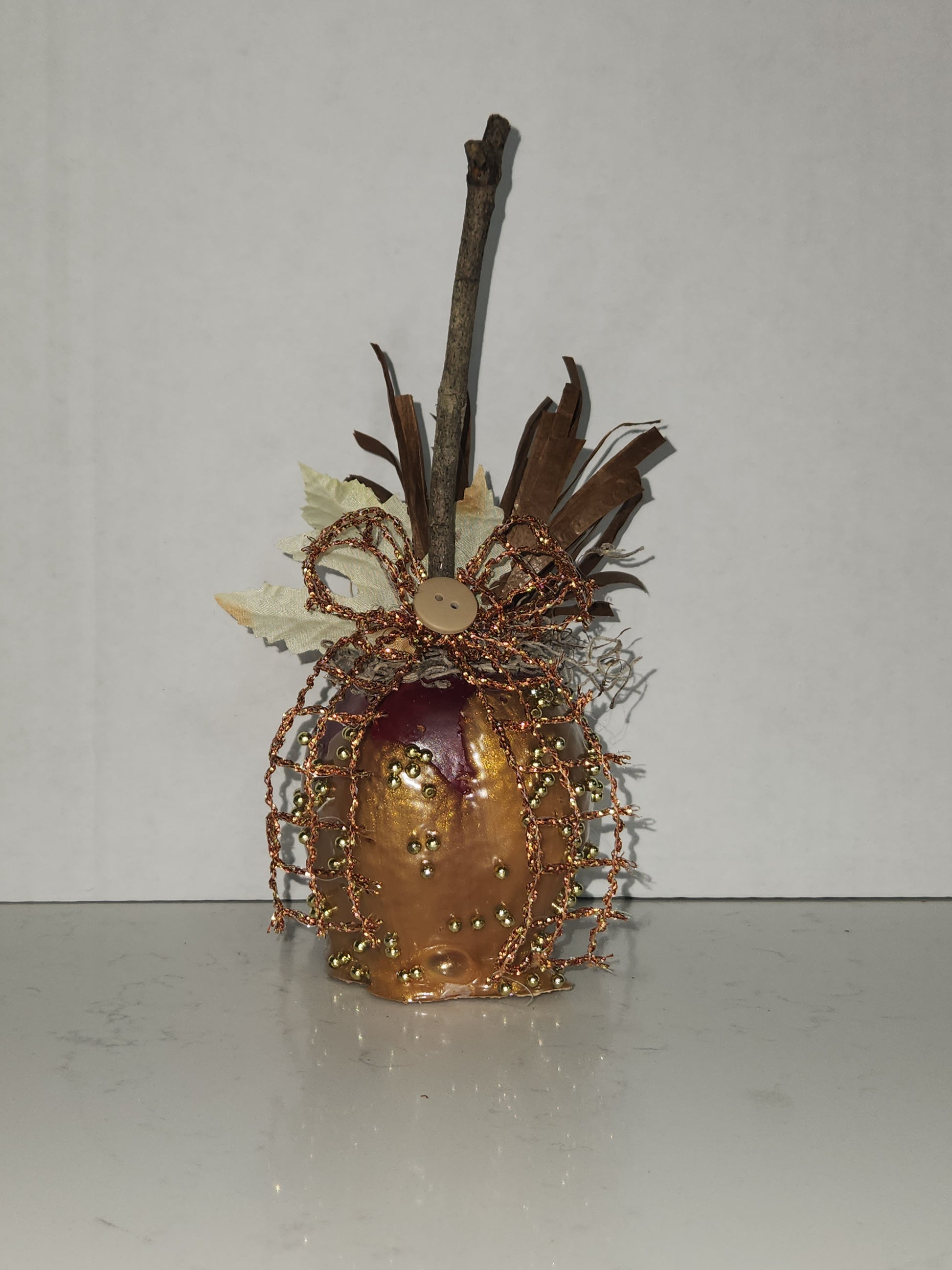 Add this beautiful hand dipped and decorated faux caramel apple to any fall decor! Made from faux apples, this adorable apple is designed to charm any home. Each piece is made to order special for you, so choose from the examples below or custom order! Email bowtiehoundproductions@yahoo.com to custom order. Make sure to leave your name and a call back number to discuss options.